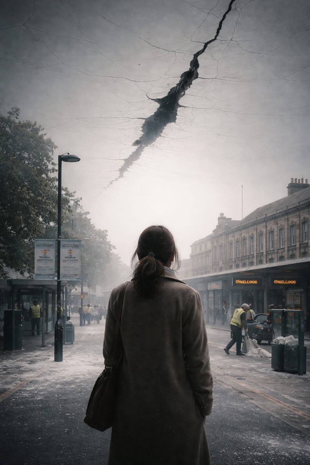 One fracture ran directly above the high street, straight from the church spire toward the old Argos building. She tried to recall the exact colour of a real sky — not the grass, not the garden — just the blue.