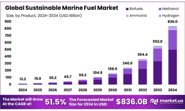 Sustainable Marine Fuel Market To Reach USD 836.0 Billion by 2034 at 51.5% CAGR. AI-Generated.