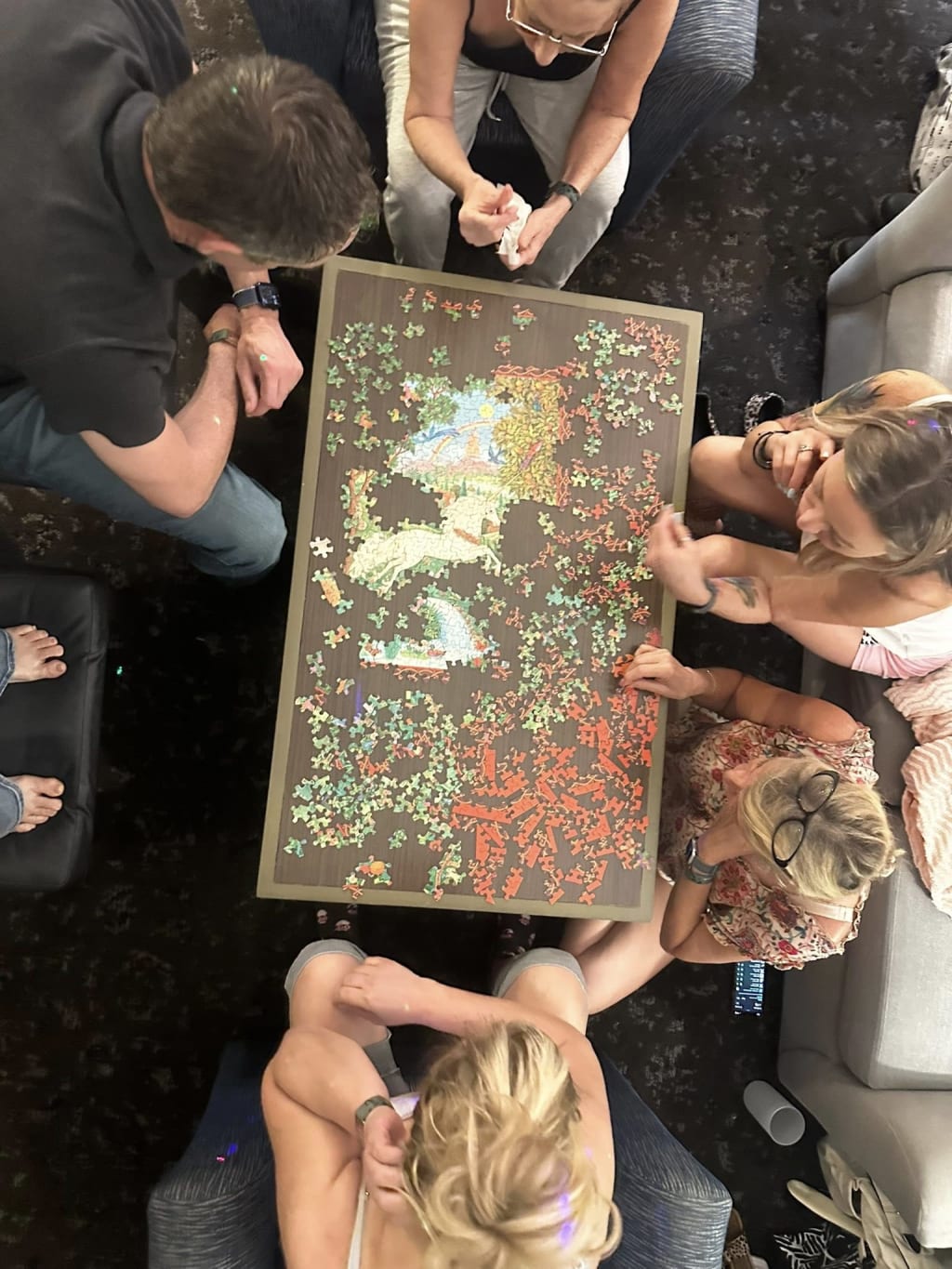 in living rooms figuring out puzzles with missing pieces,