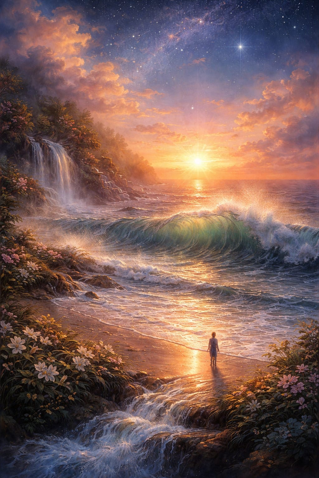 When a wave returns to its vast source,