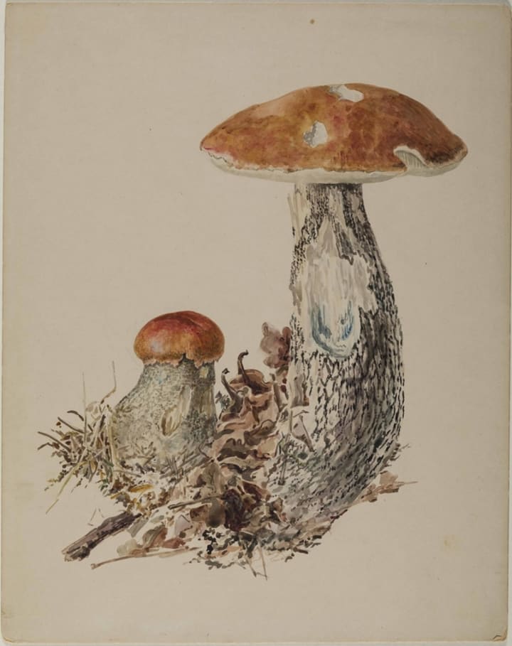 Personal reflections aside, I wanted to briefly talk about the image that closes out the poem—a scientific illustration by none other than Beatrix Potter (1866–1943), best known as the author of The Tale of Peter Rabbit and other children's books. Much less recognized, however, is Potter's status as an accomplished mycologist, who illustrated hundreds of mushroom specimens and explored the composition of lichens through her germination experiments. Shamefully, the scientific community in Victorian England dismissed Potter's work solely on the basis of her gender, and her paper 'On the Germination of the Spores of Agaricineae' (unpublished, courtesy of insecure masculinity) was lost to time. This Women's History Month, I encourage you to learn more about Beatrix Potter (see here and here) and other women who have fought—and continue to fight—against the structural inequalities pervading STEM fields.